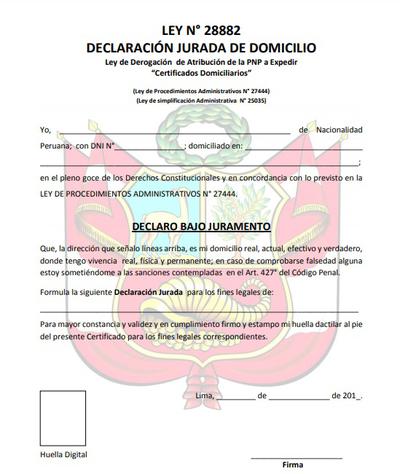 Declaracion Jurada De Domicilio Ley NÂș 28882 Ley De Simplificacion De La Certificacion Domiciliaria Yo Declaracion Jurada Carta De Renuncia Domicilios