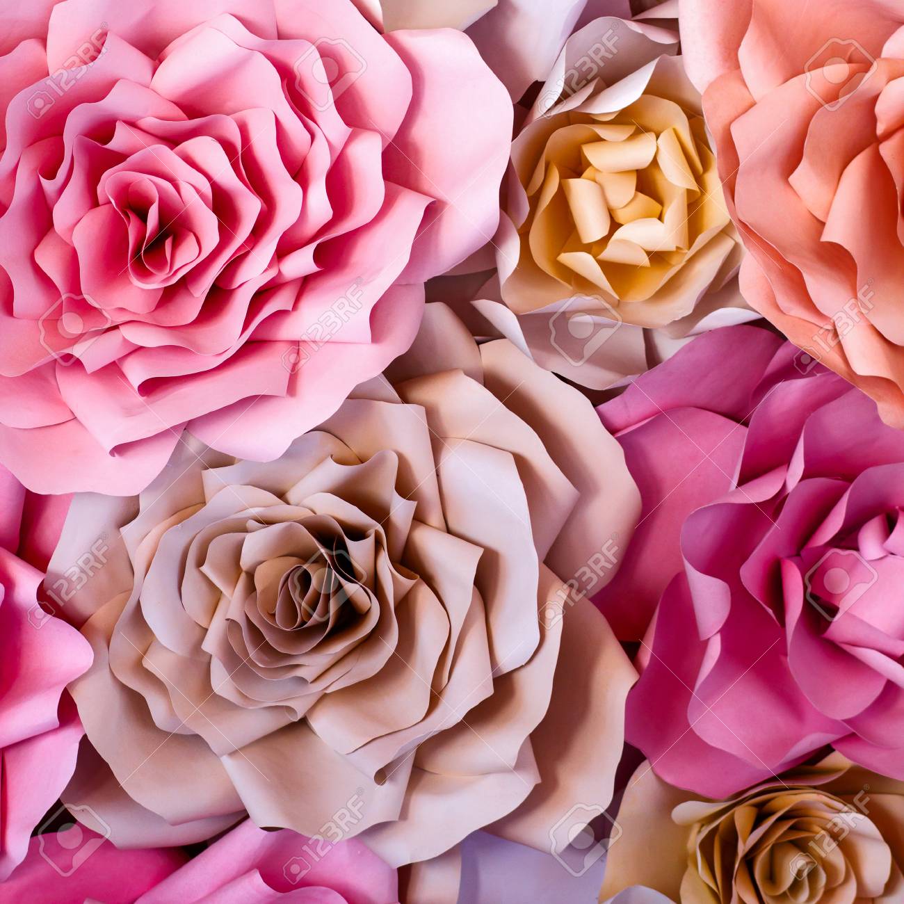 Flores De Colores De Fondo De Papel Rojo Rosa Violeta Marron Amarillo Y Rosas De Papel Hechas A Mano Melocoton Fotos Retratos Imagenes Y Fotografia De Archivo Libres De Derecho Image 92203061